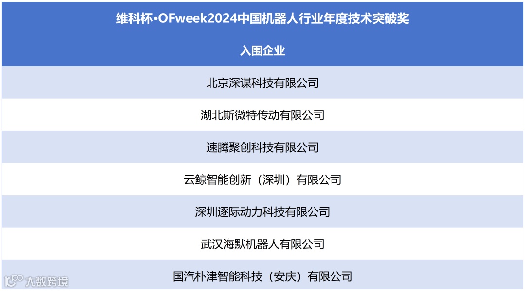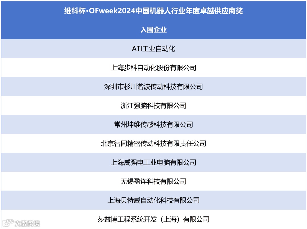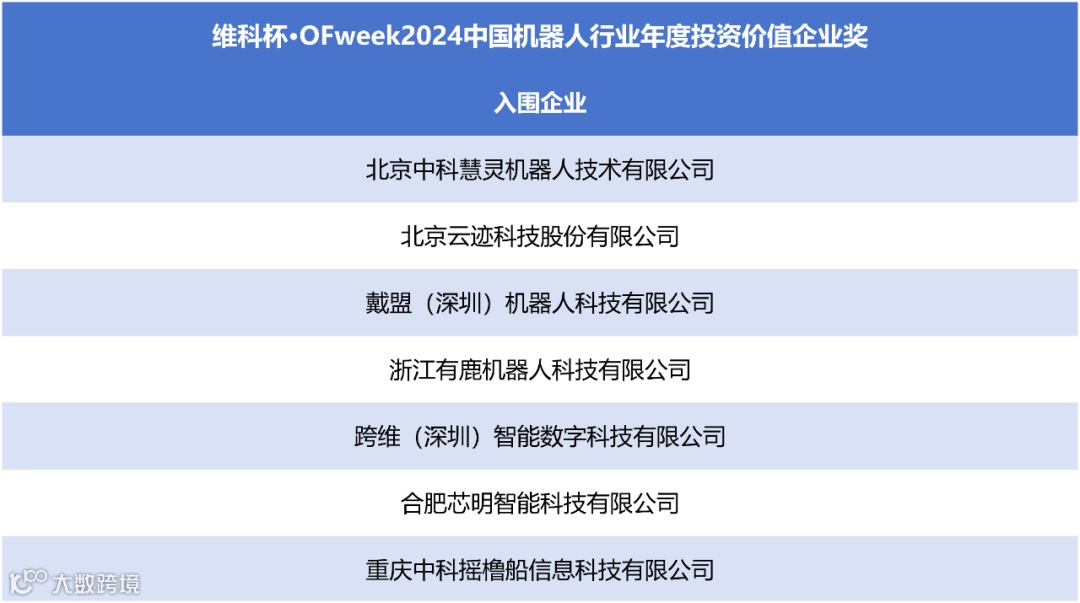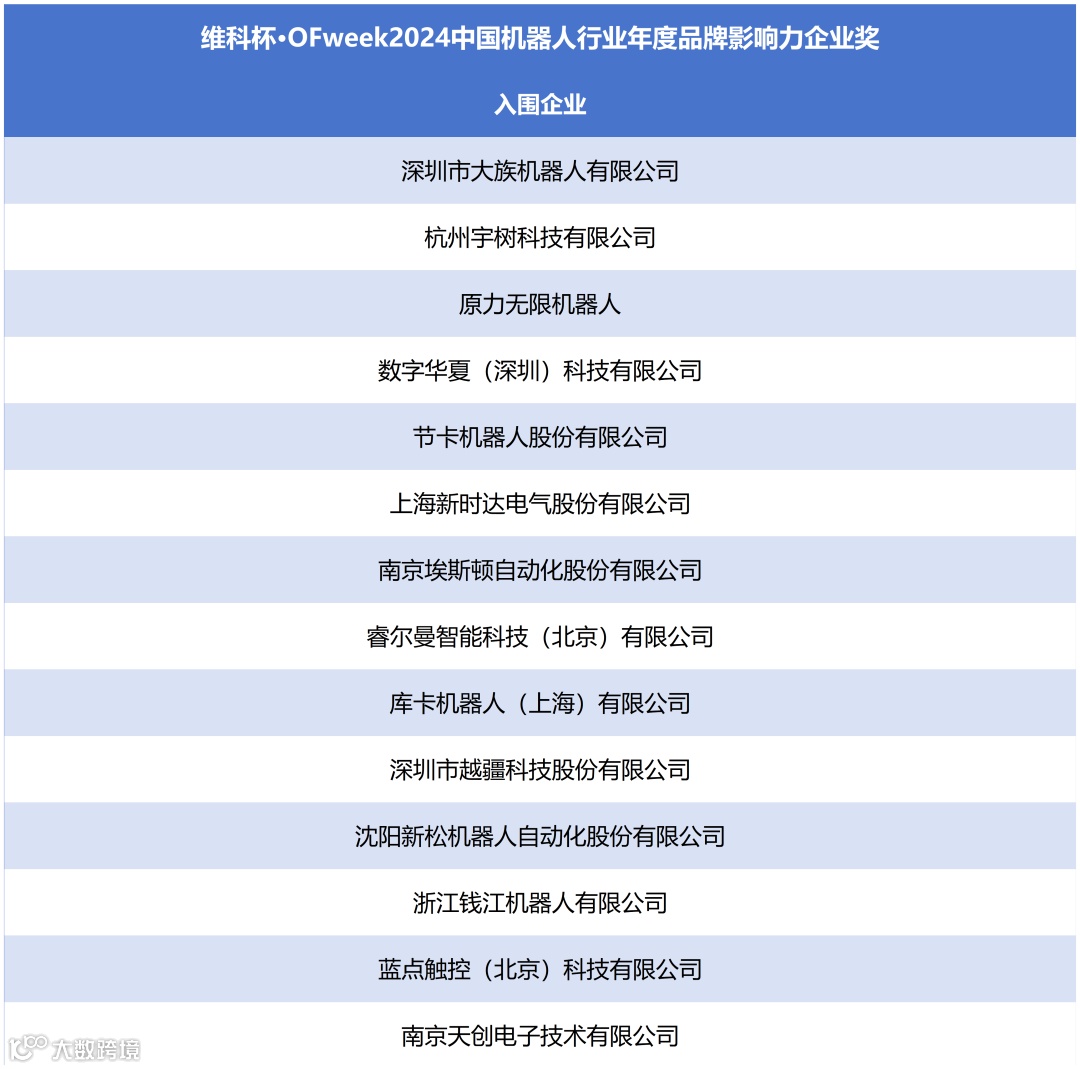 以上即为本次“维科杯·OFweek 2024中国机器人行业年度评选”入围名单!