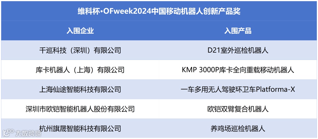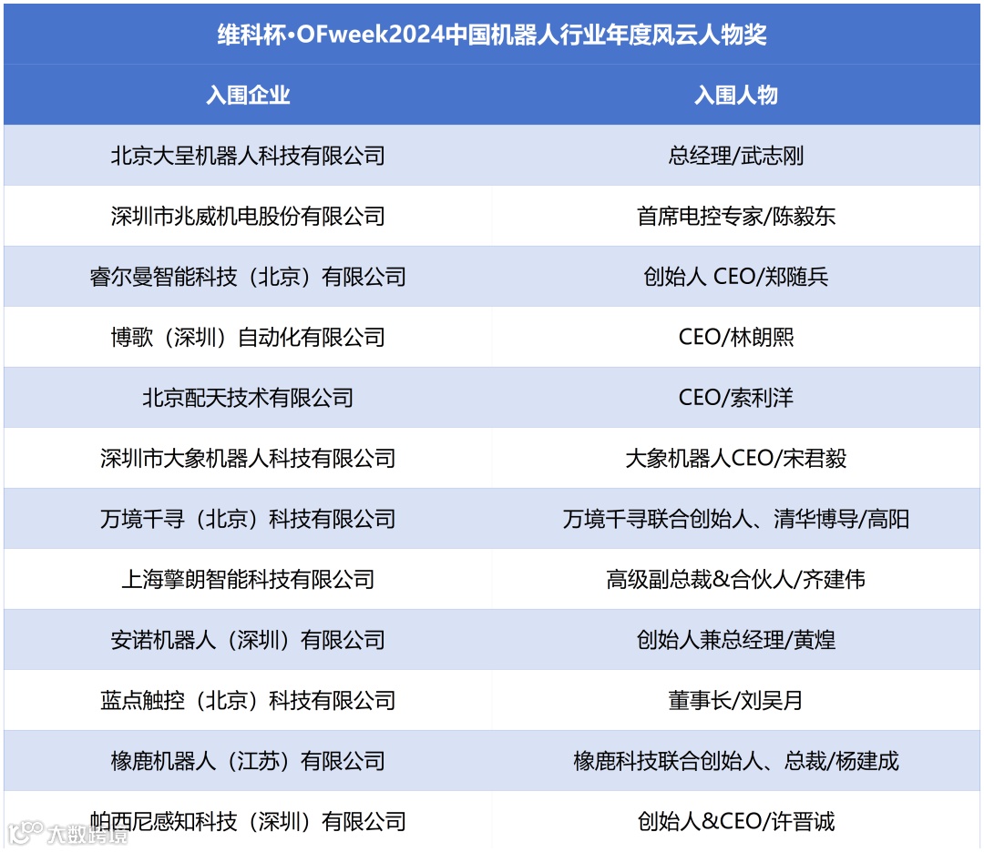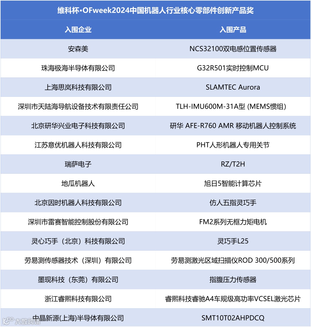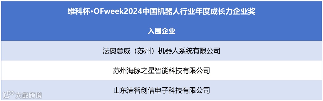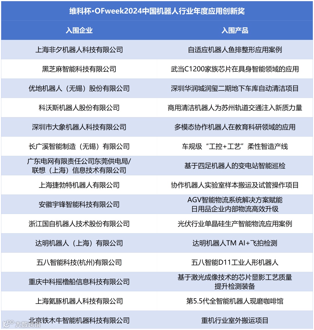 以上即为本次“维科杯·OFweek 2024中国机器人行业年度评选”入围名单!