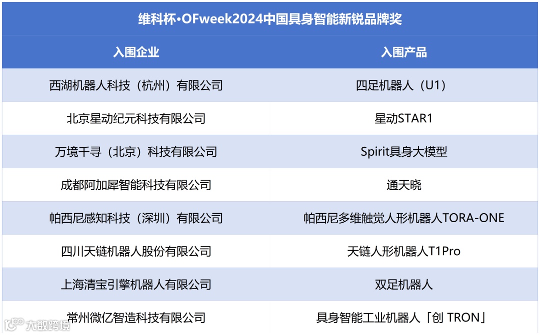 10.维科杯·OFweek 2024中国具身智能新锐品牌奖