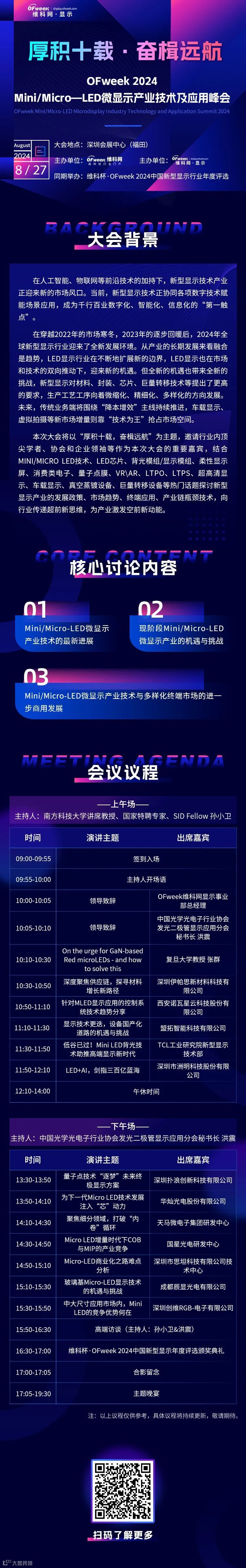 由OFweek维科网主办、维科网·显示承办的“2024Mini/Micro LED微显示产业技术及应用峰会”将于2024年8月27日在深圳会展中心(福田)隆重举行!