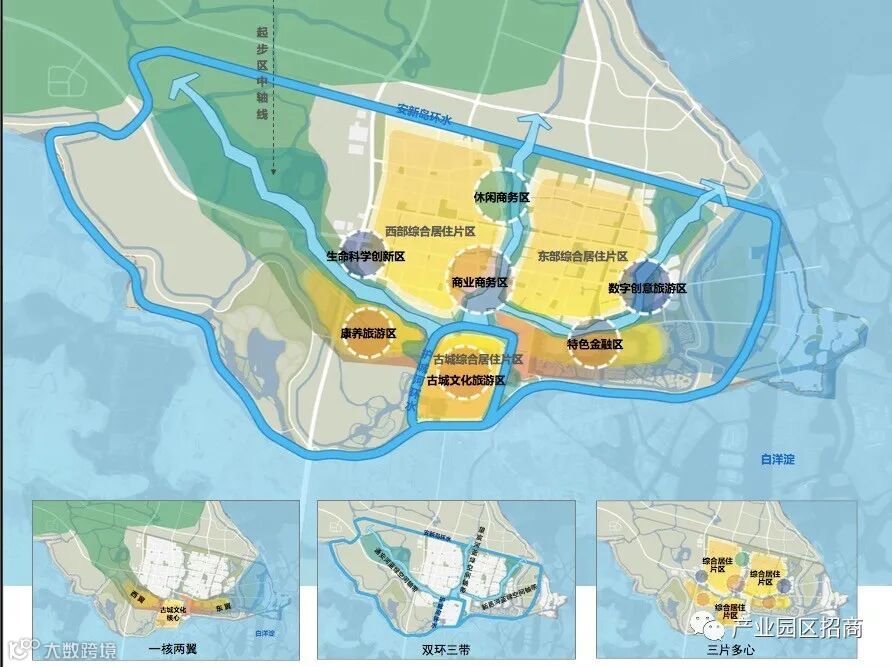 指中部商业商务区、休闲商务区、南部古城文化旅游区、东部数字创意旅游区、特色金融区、西部生命科学创新区、康养旅游区等多个城市功能发展中心。