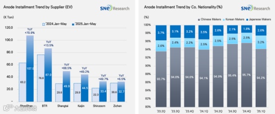 全球负极材料供应商1-5月增长率(图/SNE Research)