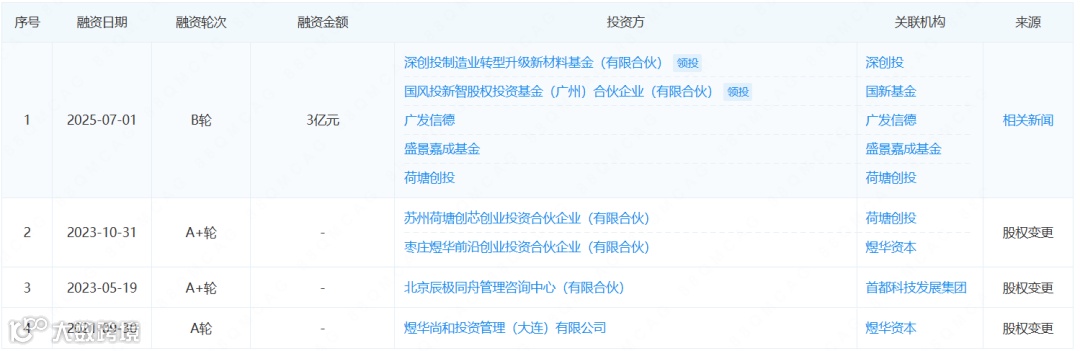 7月1日,北京飓芯科技官宣完成3亿元B轮融资,由国家制造业转型升级基金特定载体深创投新材料基金、中国国新旗下国风投新智基金联合领投,广发信德、盛景嘉成跟投,老股东荷塘创投继续加注。