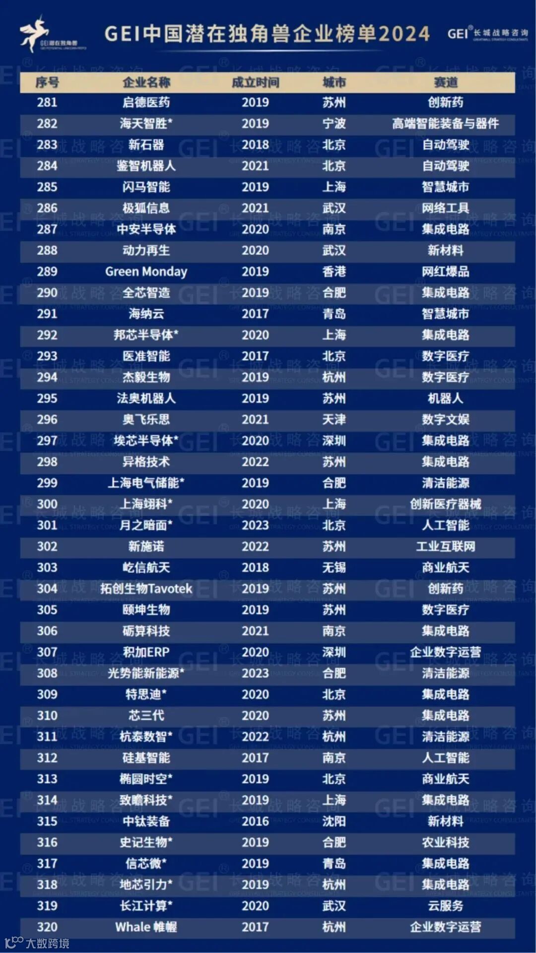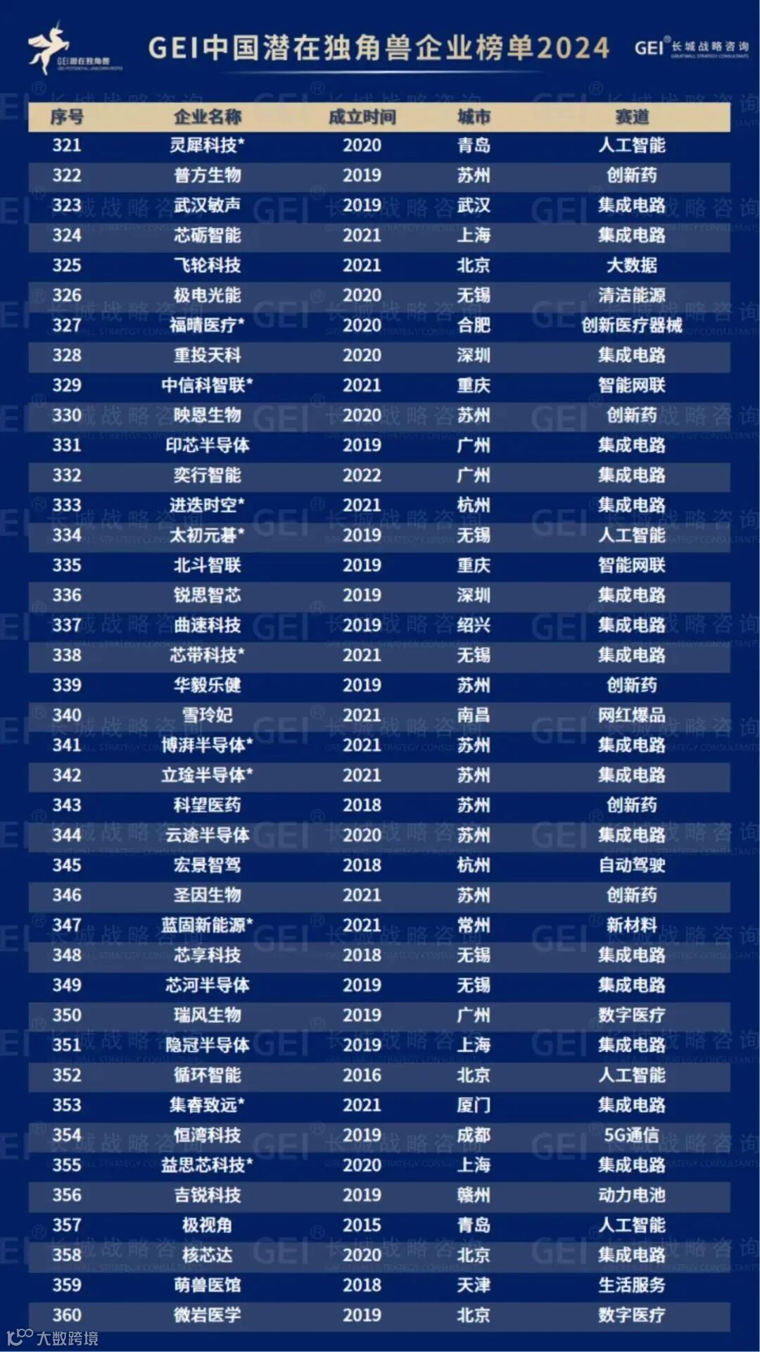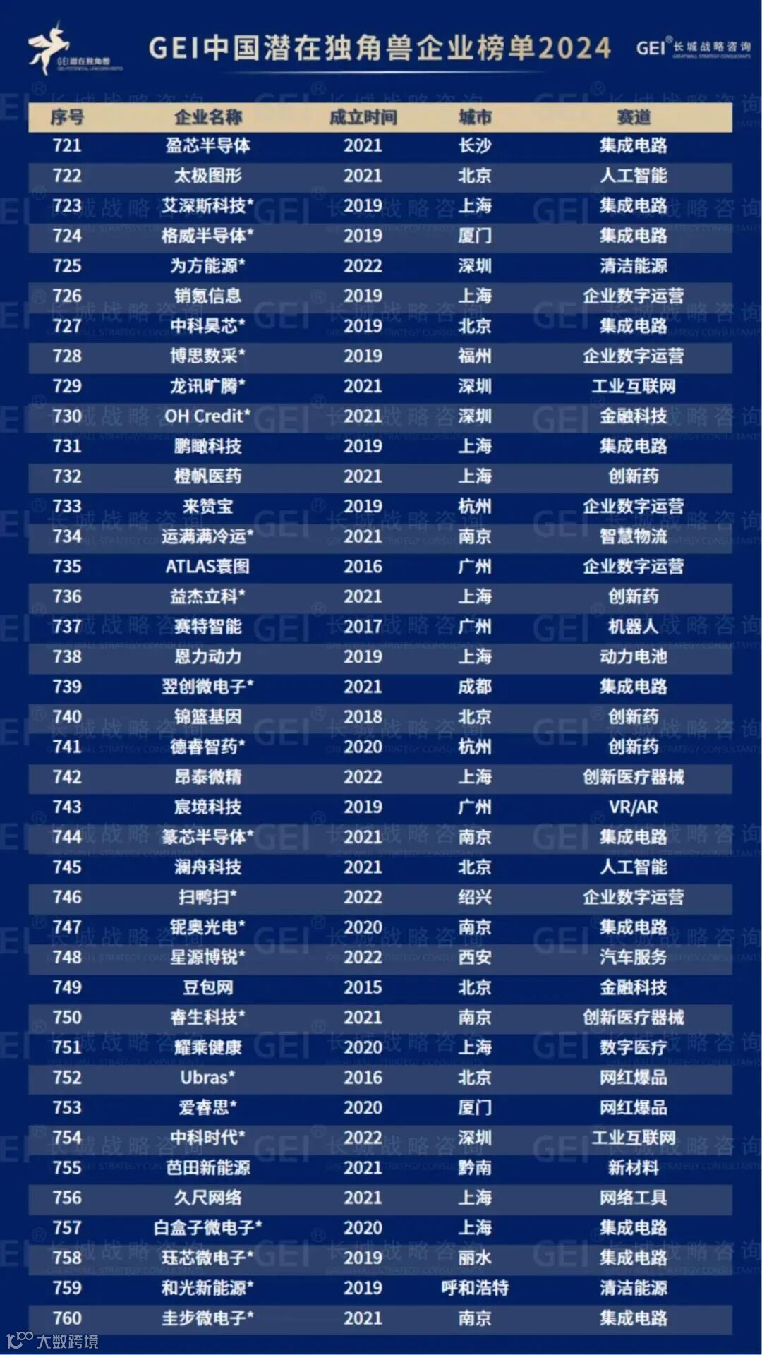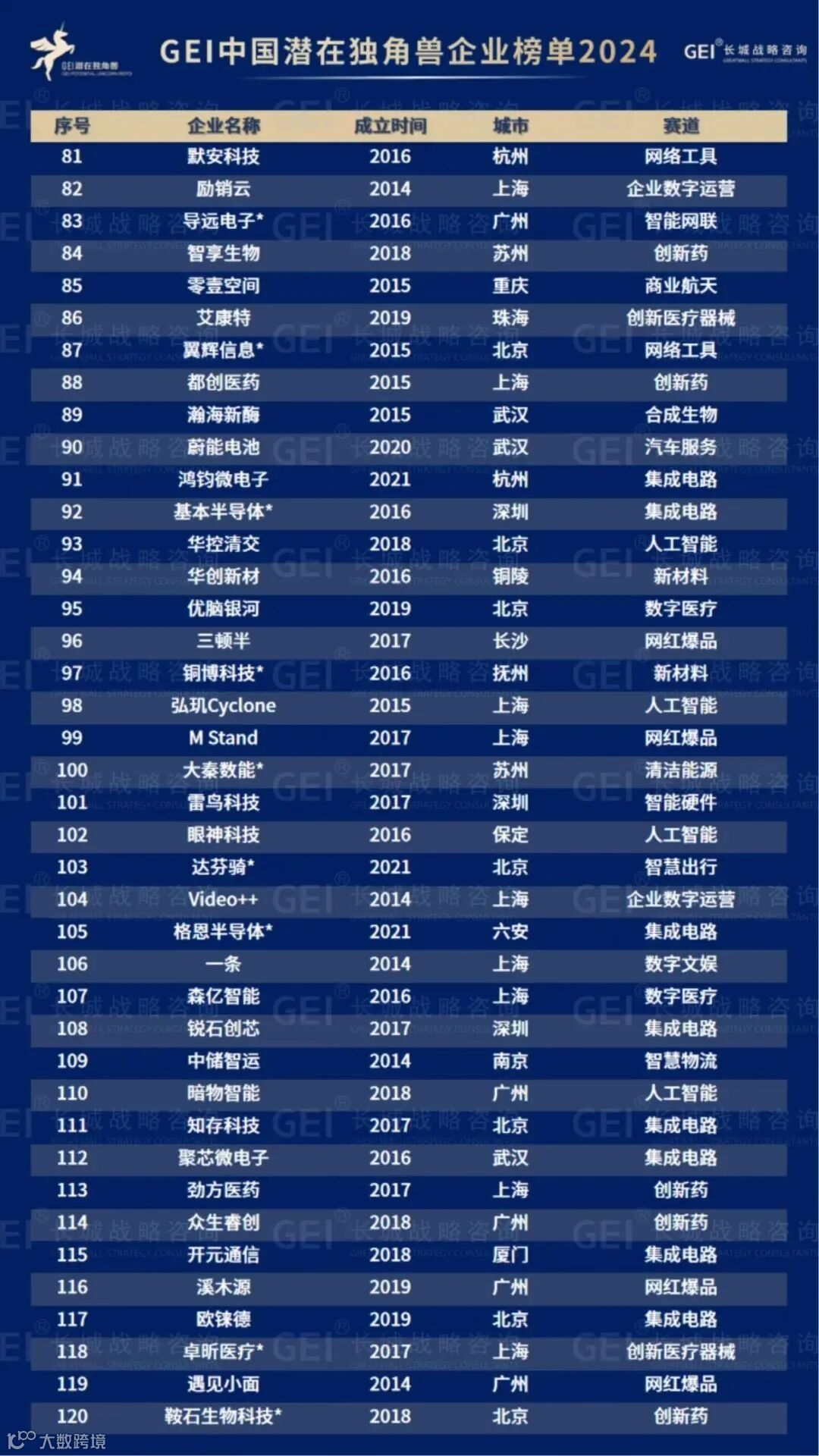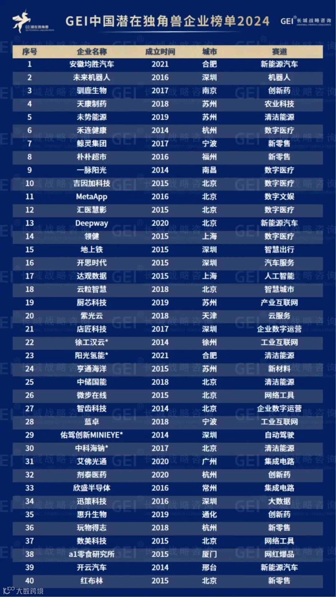 长城战略咨询发布——《GEI中国潜在独角兽企业研究报告2024》