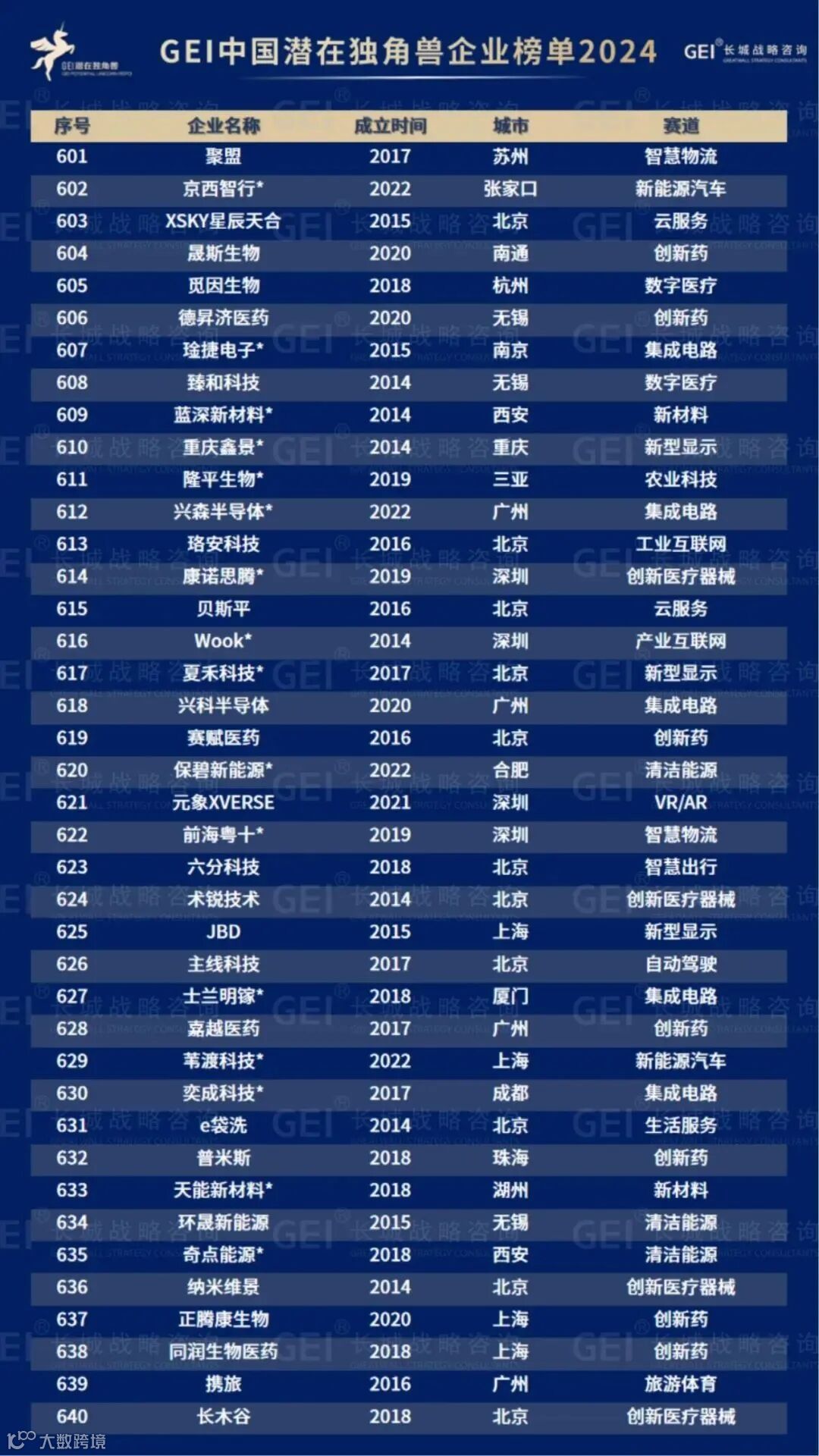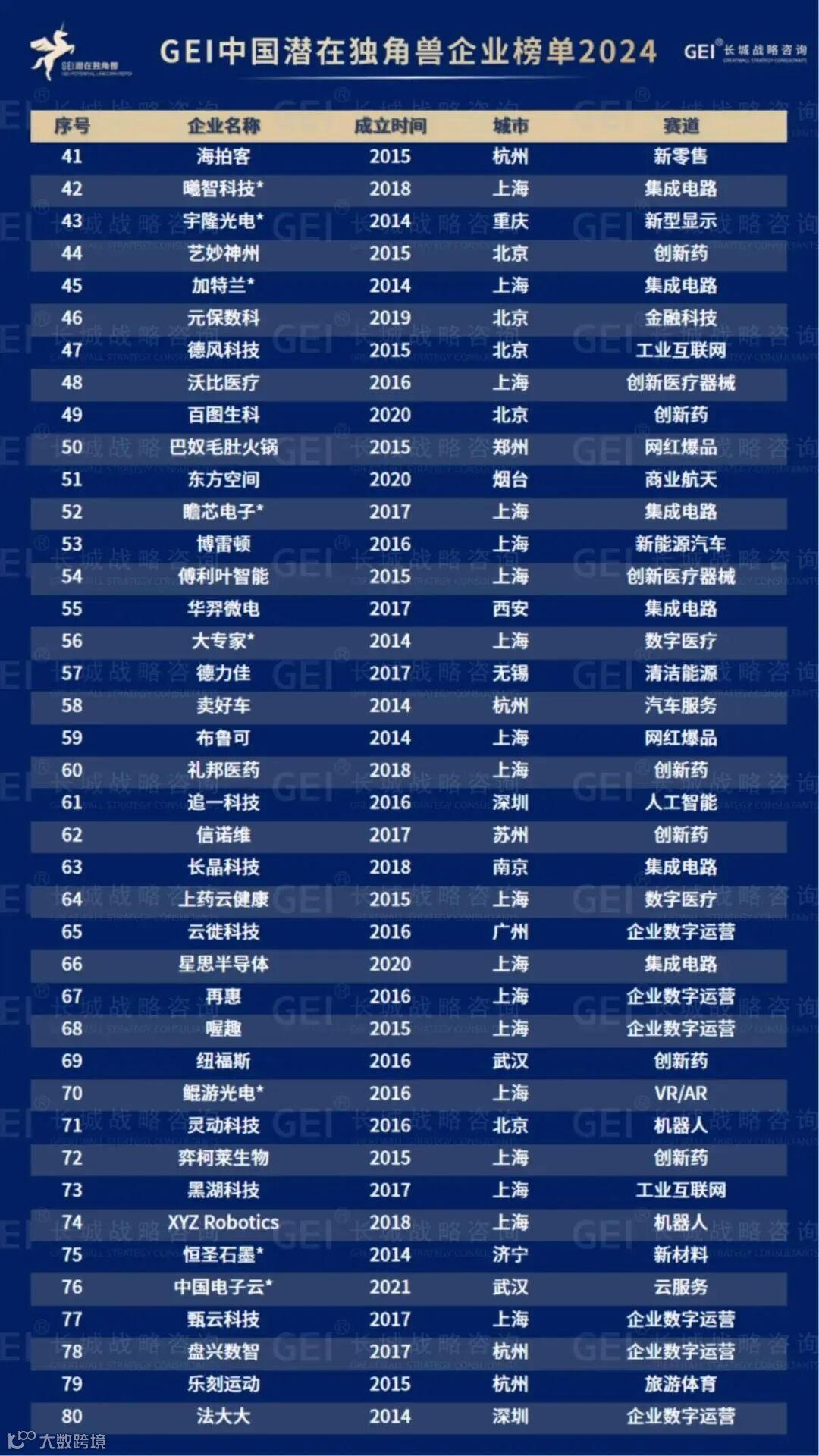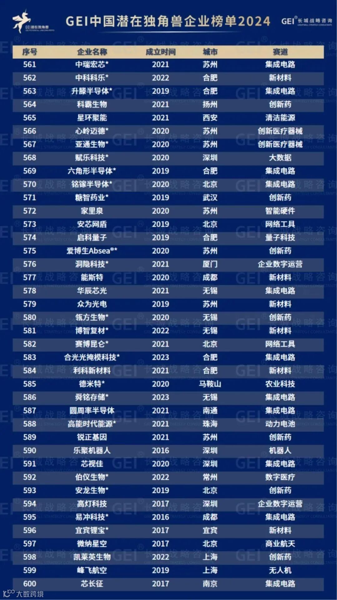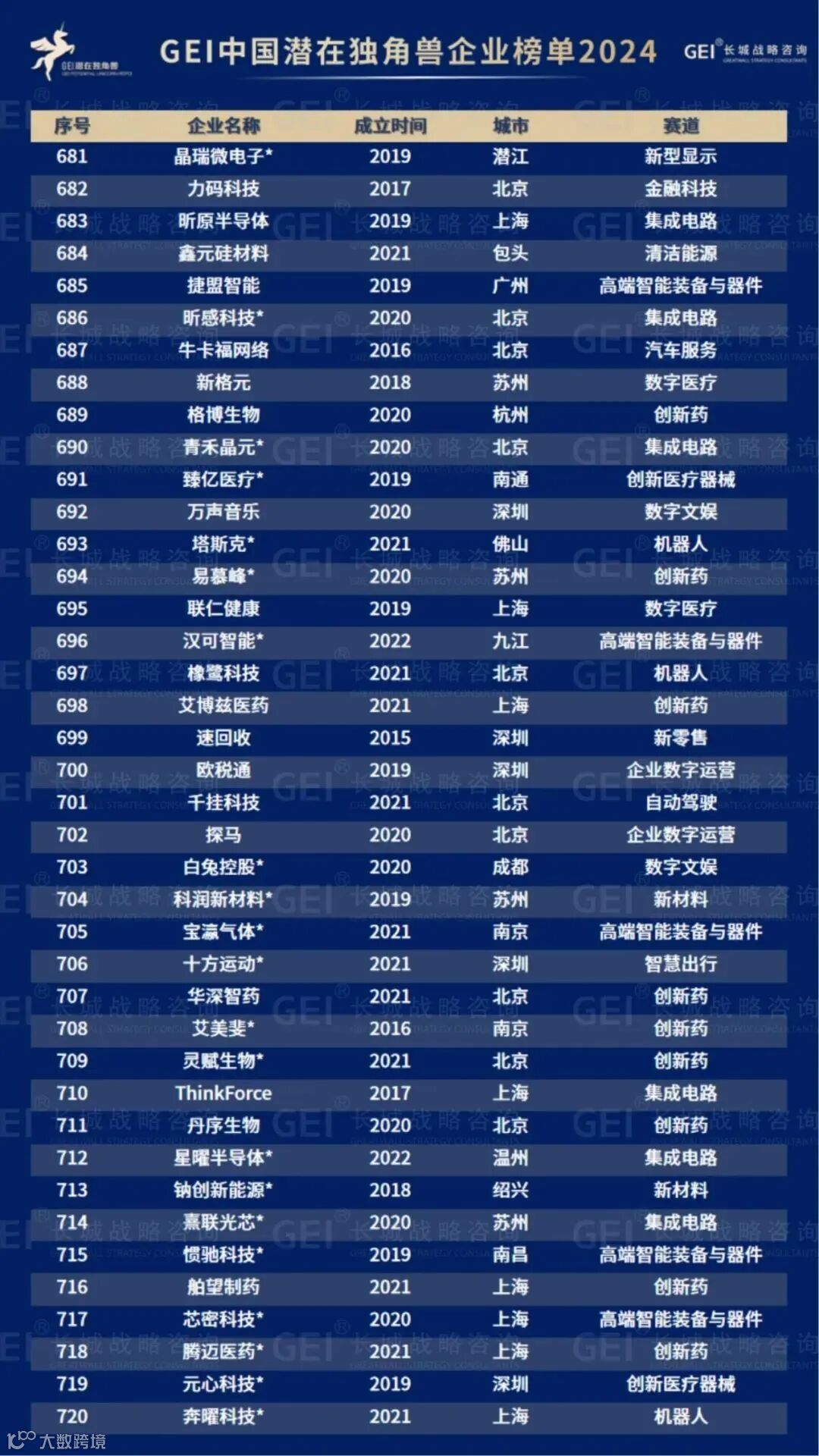 长城战略咨询发布——《GEI中国潜在独角兽企业研究报告2024》
