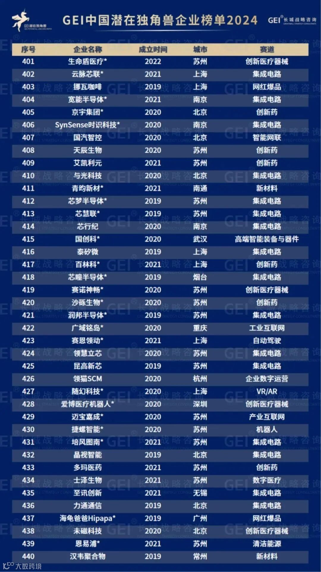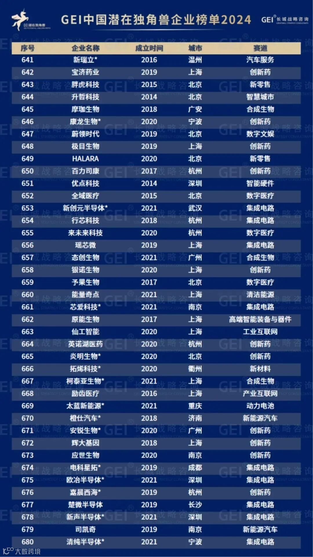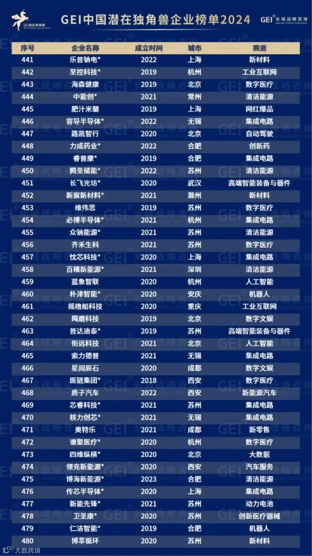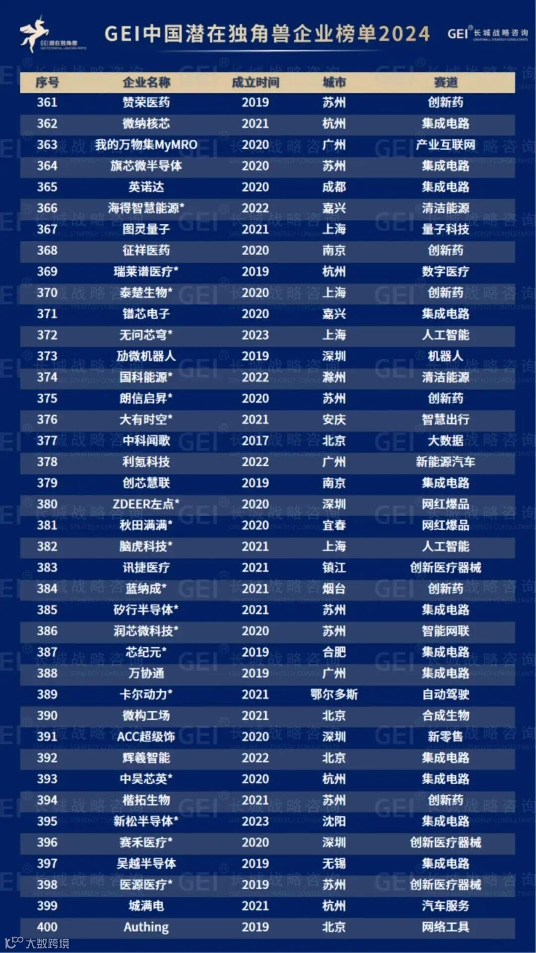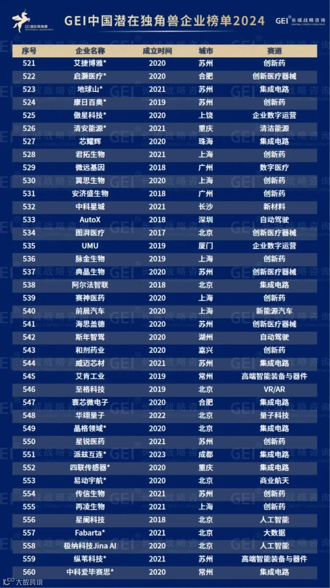 长城战略咨询发布——《GEI中国潜在独角兽企业研究报告2024》