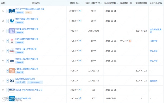 从股东列表来看,包括此次新进股东在内,江苏汇智的股东基本均为国有控股企业/上市公司,第一大股东为国企上市公司徐工机械(000425)旗下江苏徐工工程机械研究院有限公司。