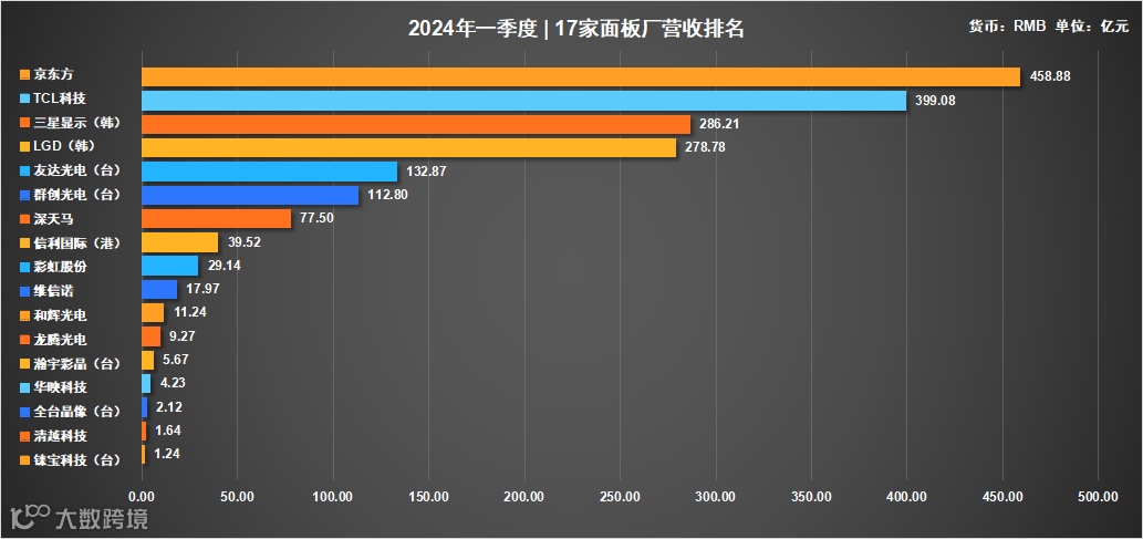此外,2024年第一季度营收破百亿的企业还有台湾的面板“双雄”-友达光电与群创光电。