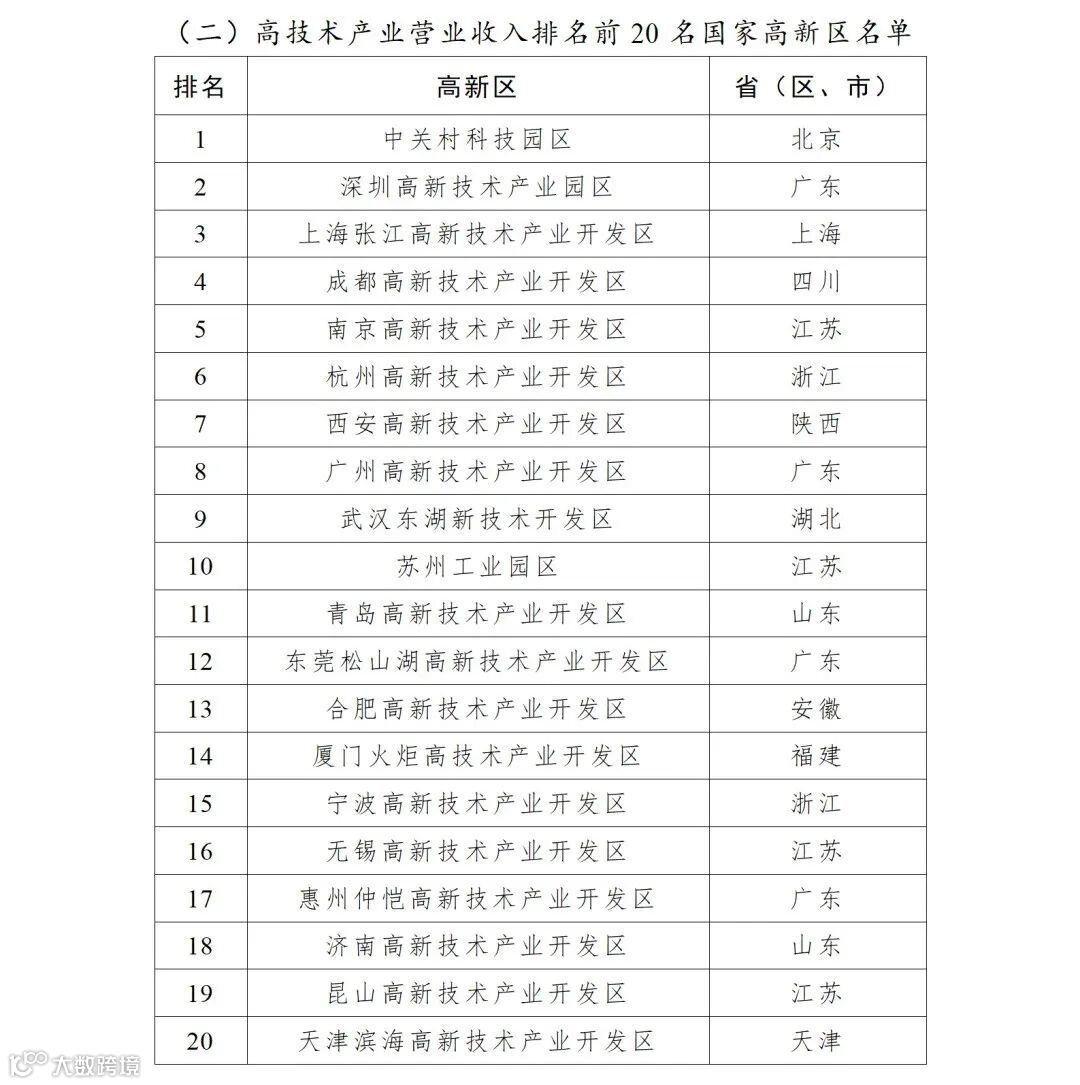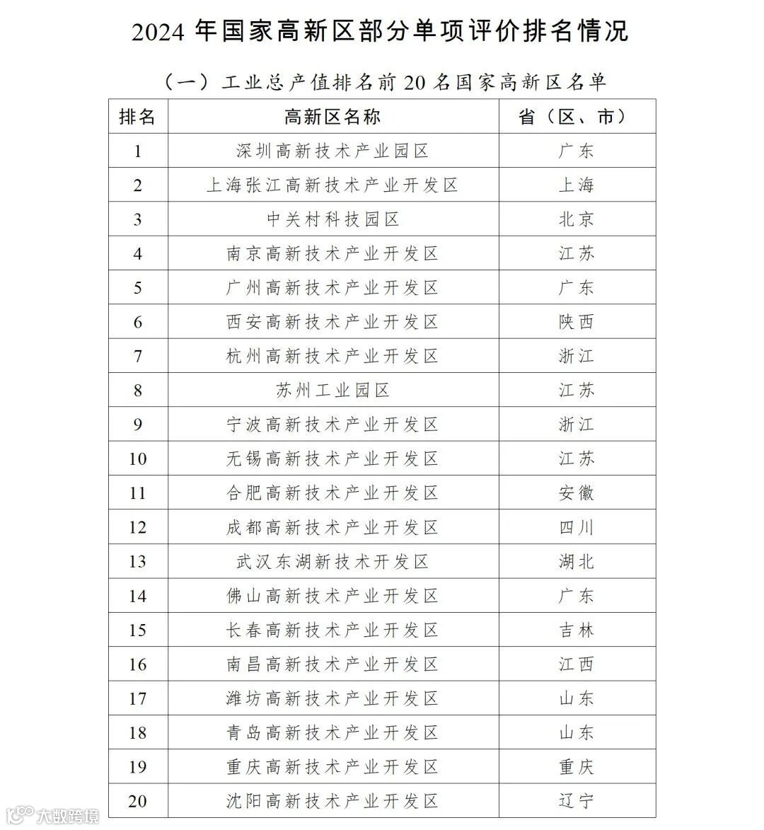 近日,工业和信息化部根据《关于印发〈国家高新技术产业开发区综合评价指标体系〉的通知》(工信部规〔2024〕169号),完成了2024年178家国家高新区综合评价工作。现公布综合评价前50名以及工业总产值、高技术产业营业收入、企业研发经费投入强度、人均技术合同成交额、优质企业数量、营商环境等六个单项评价前20名排名情况。