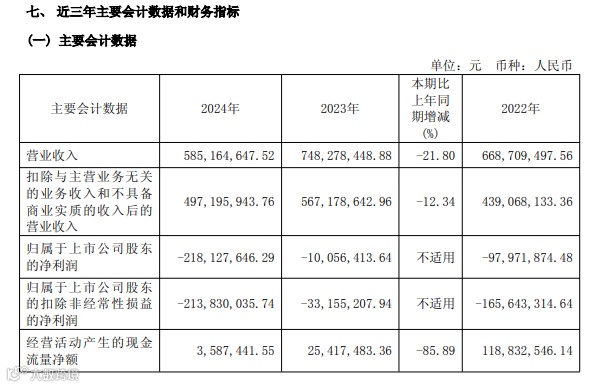 报告显示,该公司全年实现营业总收入5.85亿元,同比降幅达21.80%;归属上市公司股东净利润为-2.18亿元,较上年同期亏损幅度激增2069.04%;扣非净利润-2.14亿元,同比下滑544.94%。值得注意的是,自2022年起,亿嘉和业绩出现“拐点”,已多年陷入亏损泥沼。