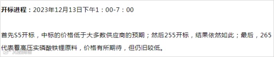 值得注意的是,比亚迪或许已经开始降本行动了。据SMM消息,去年12上旬,磷酸铁锂材料生厂商齐聚深圳,参加12月13日某电池(电芯)大厂的2024年上半年磷酸铁锂正极材料招标活动。