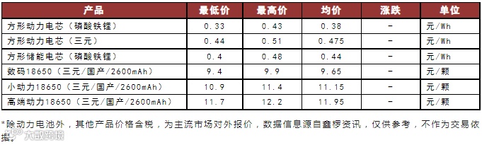 先看一组最新数据,来自鑫椤锂电的数据显示,1月16日,主流市场的方形磷酸铁锂动力电芯的最低报价已经达到0.33元/Wh,均价0.38元/Wh;方形三元动力电芯的最低价0.44元/Wh,均价0.475元/Wh。
