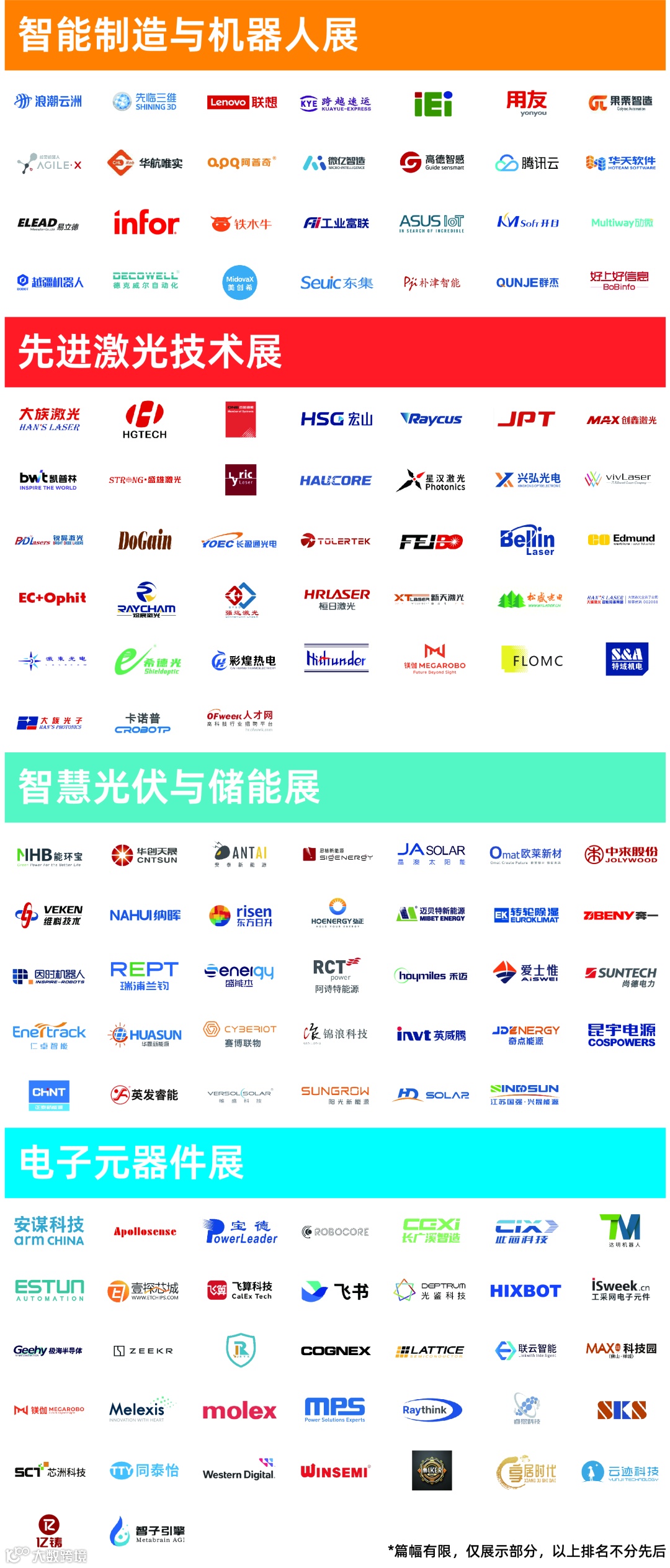 本届全数会以“数智融合,创新未来 ”为主题,包括“智慧光伏与储能展区、先进激光技术展区、智能制造与机器人展区、电子元器件展区”等四大主题展览,内容覆盖光伏/储能/锂电、激光/光电显示、智能制造/机器人/工控/工业软件/工业互联网/大数据/云计算、电子半导体/人工智能/物联网等创新应用产品,汇集联想、飞书、极氪、跨越速运、华硕、腾讯云、飞博激光、长盈通、华光光电、大秦数能、沛城电子、昆宇电源、爱士惟、欧莱新材、中来股份、果栗智造、东集技术、华航唯实、先临三维、易立德、宝德计算机、芯源系统、埃斯顿等知名企业参展。