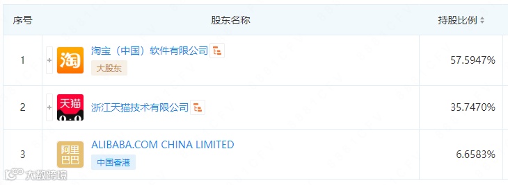 值得注意的是,杭州灏月是阿里巴巴(中国)网络技术有限公司的一致行动人公司,两家公司的股东持股情况一致:淘宝(中国)软件有限公司持股57.5947%、浙江天猫技术有限公司持股35.7470%、ALIBABA.COM CHINA LIMITED持股6.6583%。