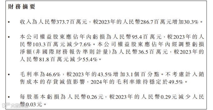 数据显示,2024年,该公司实现营业收入3.74亿元人民币,同比增长30.32%;净亏损同比收窄7.67%至9536.3万元,经调整后净亏损3650万元,同比大幅缩减55.4%,经营性现金流显著改善,正稳步走出亏损困境,未来发展前景一片光明 。