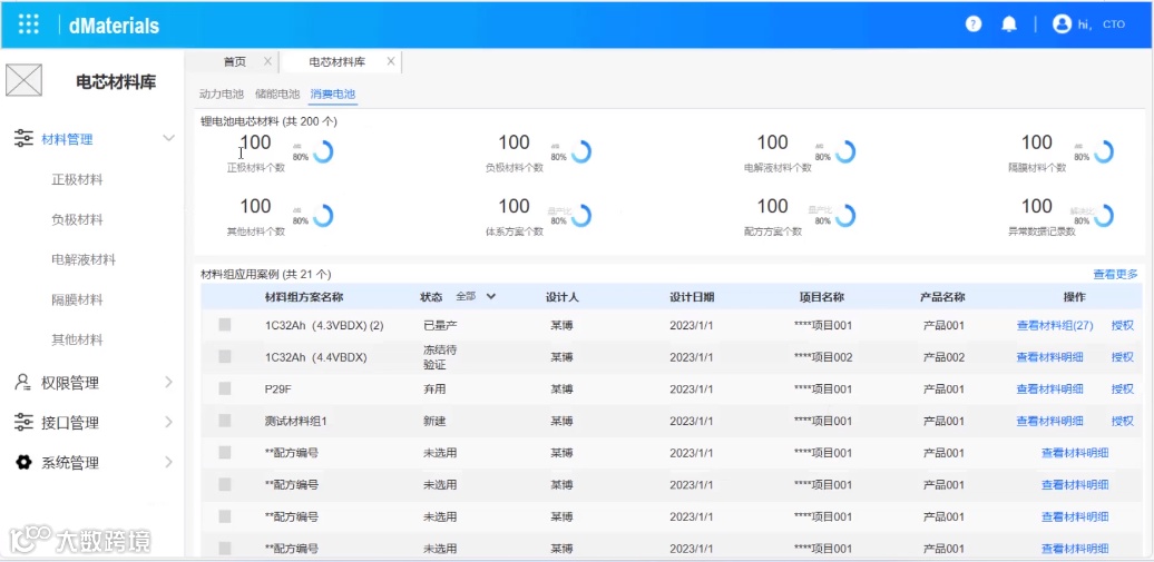 在锂电池的研究和开发中,材料的选择和优化是提高工作效率的关键因素之一,研究人员或工程师查找材料的详细数据需要查找多个网站,效率很低且准确性难以保障,在不同材料之间的选型则需要查看大量的数据进行对比,非常繁琐。