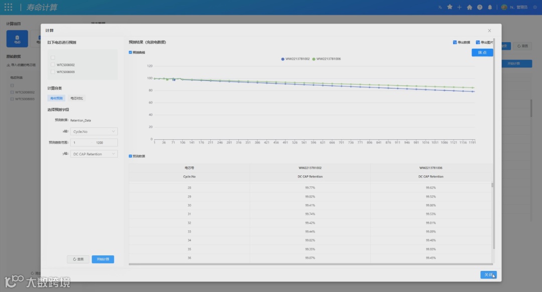 该平台可以通过数据沉淀,协助研发团队形成知识库积累,在电池寿命、充放电性能、失效、克容比、能效比等各种分析场景中使用。同时,具有对材料和成品在试制、测试过程中产生的大量原始数据进行高效处理计算的能力。如: