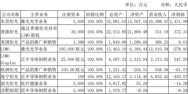 原有业务激光光学产品线(MO)保留在LIMO中运营,并在东莞新建产能共同从事激光光学元器件业务;