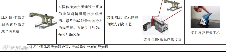 本次中标设备激光剥离主要是利用利用激光脉冲的高能量密度,将薄膜材料与基板之间的粘结力瞬间破坏,实现剥离基板与OLED器件的分离,是柔性OLED面板生产中的关键制程之一。