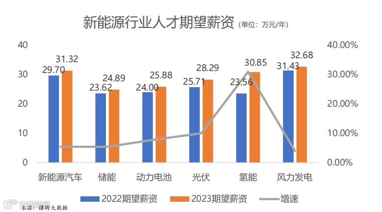 对于薪资方面,报告指出,新能源行业人才的期望薪资从2022年的26.34万元提升到2023年的28.99万元,平均期望增速为10.6%,其中储能行业的薪资增幅从2022年的23.62万元提升到2023年的24.89万元。这反映出储能行业在薪资方面的竞争力,以及对人才的吸引力。