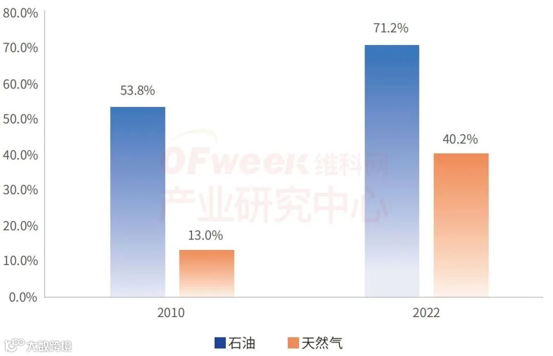 2010和2022年我国原油和天然气对外依存度