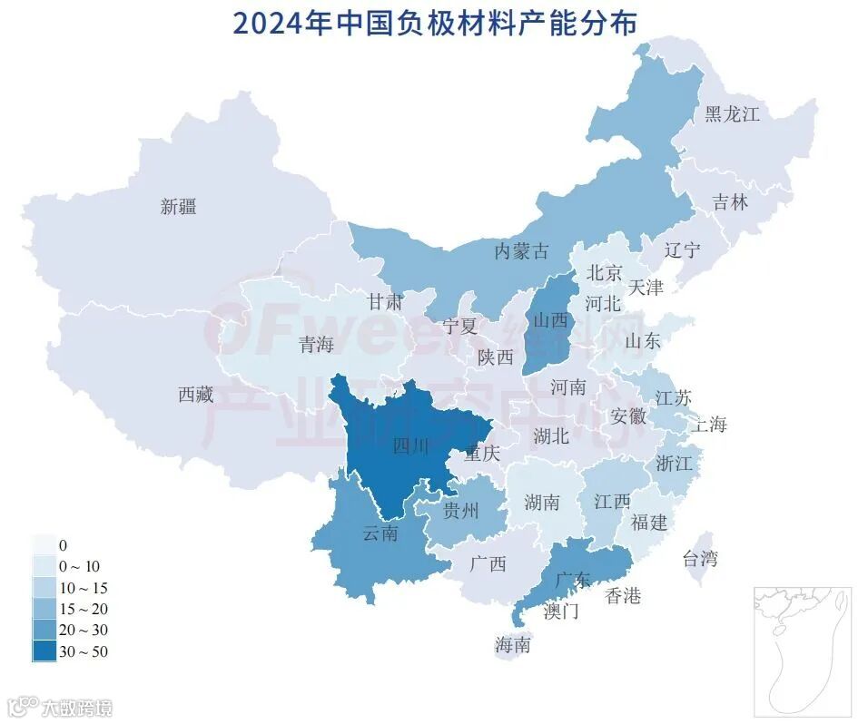 根据维科产业研究中心统计,现阶段龙头厂商负极材料产能已达到216.8万吨,其中贝特瑞和杉杉股份产能超过40万吨,璞泰来、广东凯金、中科星城和尚太科技均超过20万吨,六家厂商合计占本次统计产能的87%。以云贵川为代表的西南地区产能集聚效应明显,四川产能超过40万吨。