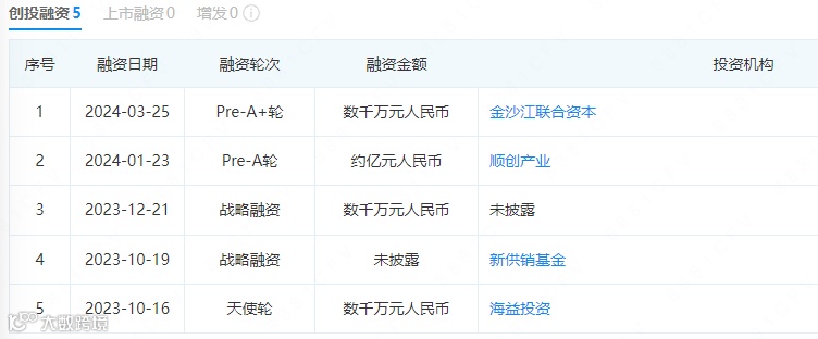 而截至2024年3月25日,粤十机器人已在半年内完成5轮融资。