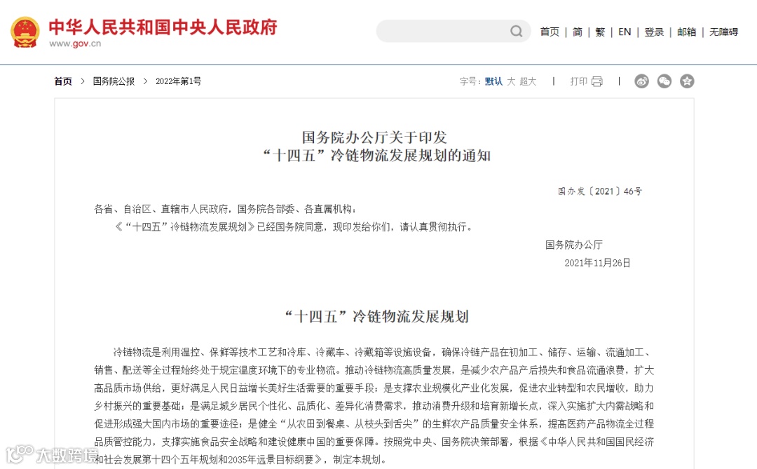 2021年12月13日,国务院办公厅印发《“十四五”冷链物流规划》(以下简称《规划》),指出未来我国将大力推动冷链行业智能化升级,加快传统冷库设施改造,推广自动立体货架、智能分拣、物流机器人、温度监控等先进设备,打造自动化无人冷链仓。