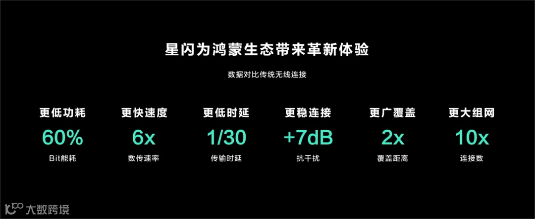 他指出,星闪技术为鸿蒙生态系统带来了六个方面的革新体验,分别是更低的能耗、更快的数据传输、更低的传输时延、更稳定可靠的无线连接、更广的信号覆盖以及更大的组网规模。