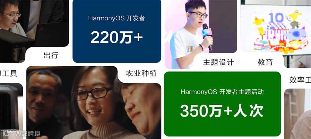 HarmonyOS开发者数量超过220万人,开发者主题活动参加过350万人次,每日API调用次数达到590亿次。