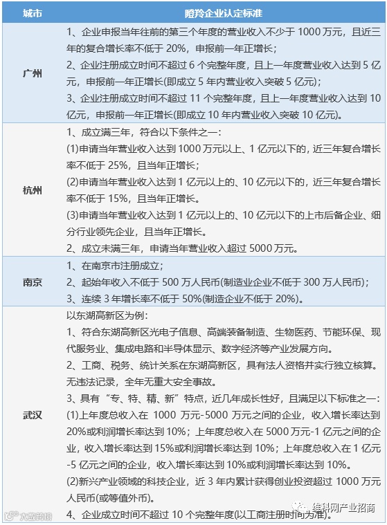 瞪羚企业有强大的带动作用,很多已成为产业链中的骨干甚至链主企业,将来很有可能成长为领军企业、龙头企业。我国各地区的瞪羚企业认定标准、瞪羚企业申报条件、瞪羚企业优惠政策各有所区别,以广州、杭州、南京、武汉等地为例进行介绍。