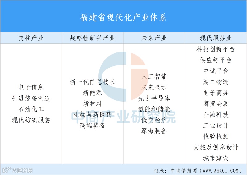 福建正加快构建现代化产业体系,大力培育县域重点产业链,推动“四链”融合,统筹推进传统产业“智改数转”,巩固提升支柱产业,培育壮大战略性新兴产业,前瞻布局未来产业,提升现代服务业发展水平,促进产业向智能化、绿色化、融合化转型升级。