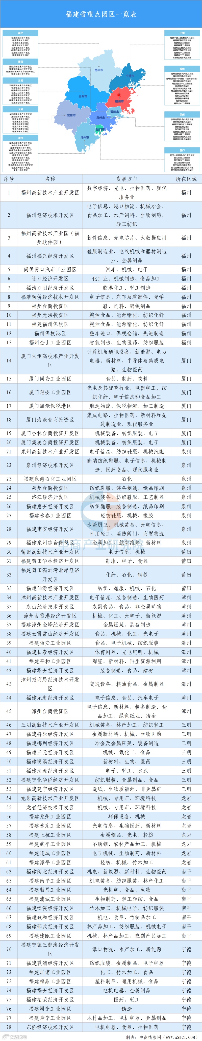 福建全省共有省级以上开发区98家,其中国家级开发区24家,省级开发区74家,已开发利用土地1067平方公里,承载着电子信息、先进装备制造、石油化工、纺织鞋服、食品、冶金、建材、新能源、新材料、生物医药等重点产业,宁德时代、青拓不锈钢、冠捷显示器、天马微电子等一批重点产业链龙头企业均落地在国家级、省级开发区内。