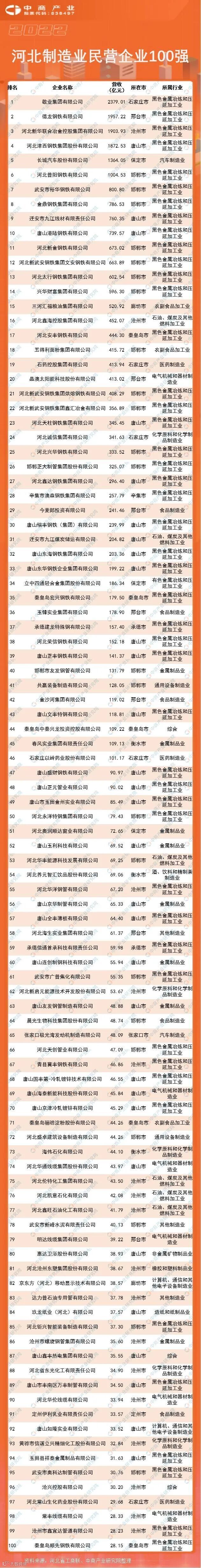 敬业集团有限公司、德龙钢铁有限公司、河北新华联合冶金控股集团有限公司、河北津西钢铁集团股份有限公司、长城汽车股份有限公司、河北普阳钢铁有限公司、武安市裕华钢铁有限公司、金鼎钢铁集团有限公司、迁安市九江线材有限责任公司、唐山港陆钢铁有限公司进入榜单前十。