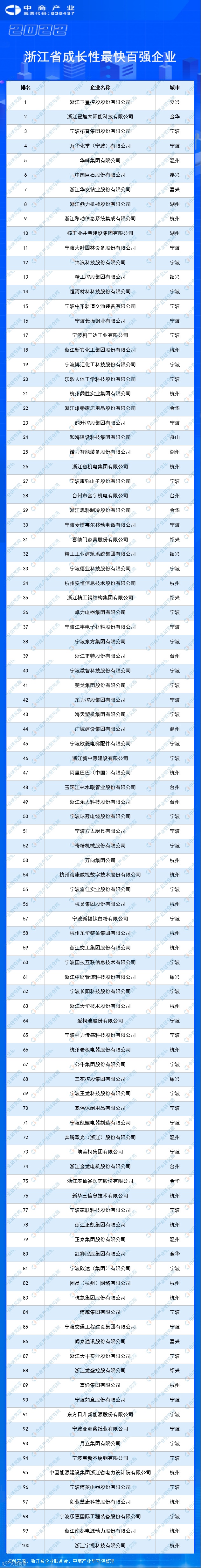 近日,浙江省企业联合会、省企业家协会、省工业经济联合会正式发布了“2022浙江省成长性最快百强企业”榜单。从企业所属城市来看,宁波、杭州上榜企业较多,分别为49家、22家。