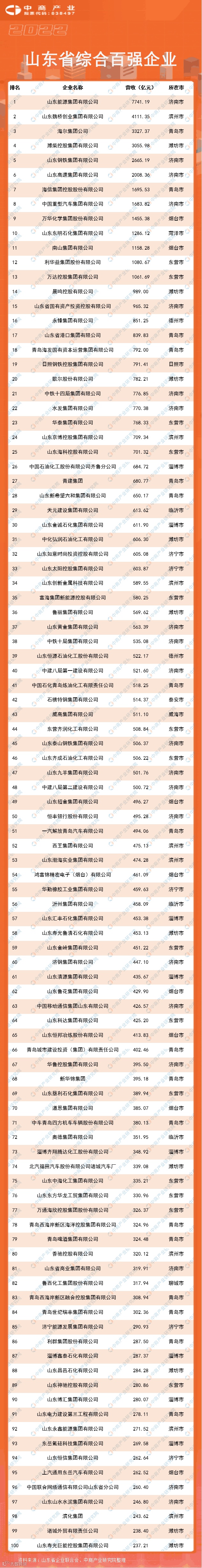 近日,山东省工业和信息化厅、省企业联合会公布了2022山东综合百强企业名单。榜单显示,山东综合百强企业营收达73705.01亿元。