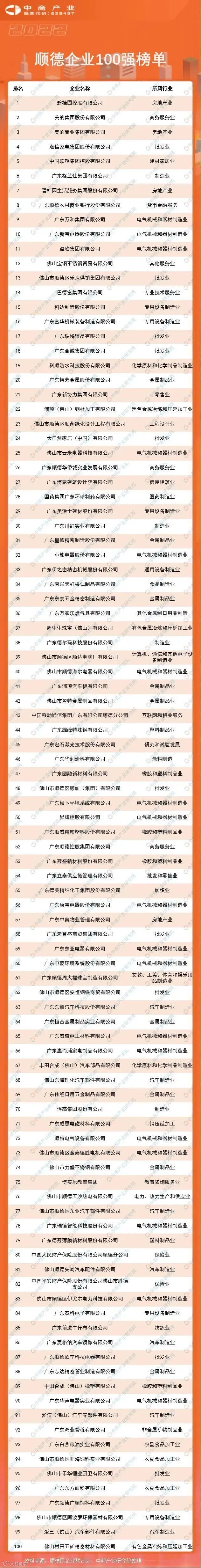 近日,顺德区企业联合会、顺德区企业家协会发布“2022顺德企业100强榜单”。榜单显示,入围门槛为9.08亿元,同比增长提高1.2,总营收超1.4万亿元,同比增长16.54%。
