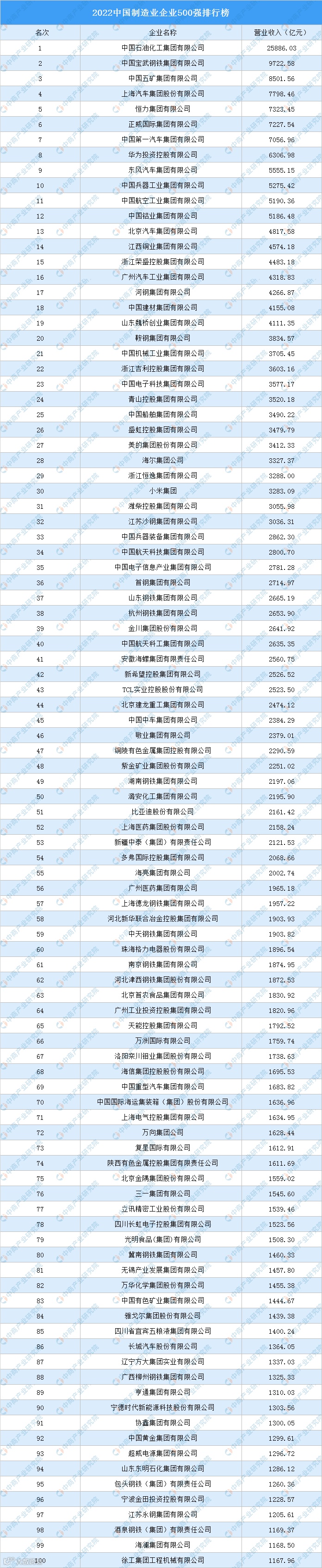 今年115家企业营业收入超千亿,12家企业营业收入超5000亿元,中国石化、中国宝武、中国五矿、上汽集团、恒力集团、正威集团、一汽集团、华为、东风汽车、中国兵器工业集团位居榜单前十,其中,中国石化营业收入最高达25886.03亿元。