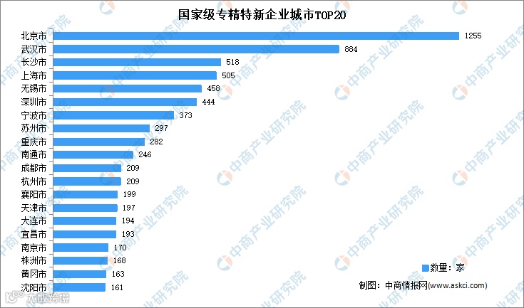 从城市来看,北京市上榜企业数量最多,共计1255家,也是唯一一个上榜企业超1000家的城市;其次是武汉市,上榜企业达884家;再次是长沙市,上榜企业为518家。前二十城市共计上榜7125家,占总上榜企业数量的46.4%。