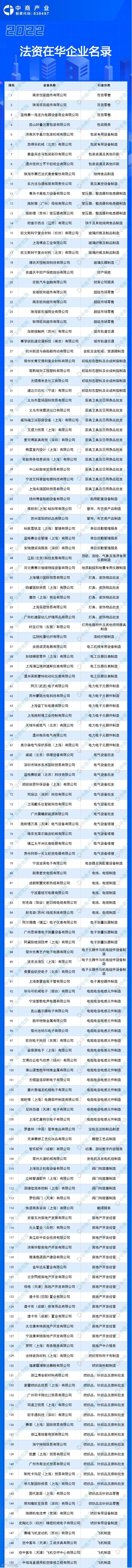 本次中商产业研究院节选了500家企业,如若需要完整法资在华企业名录,请关注微信公众号招商情报库。