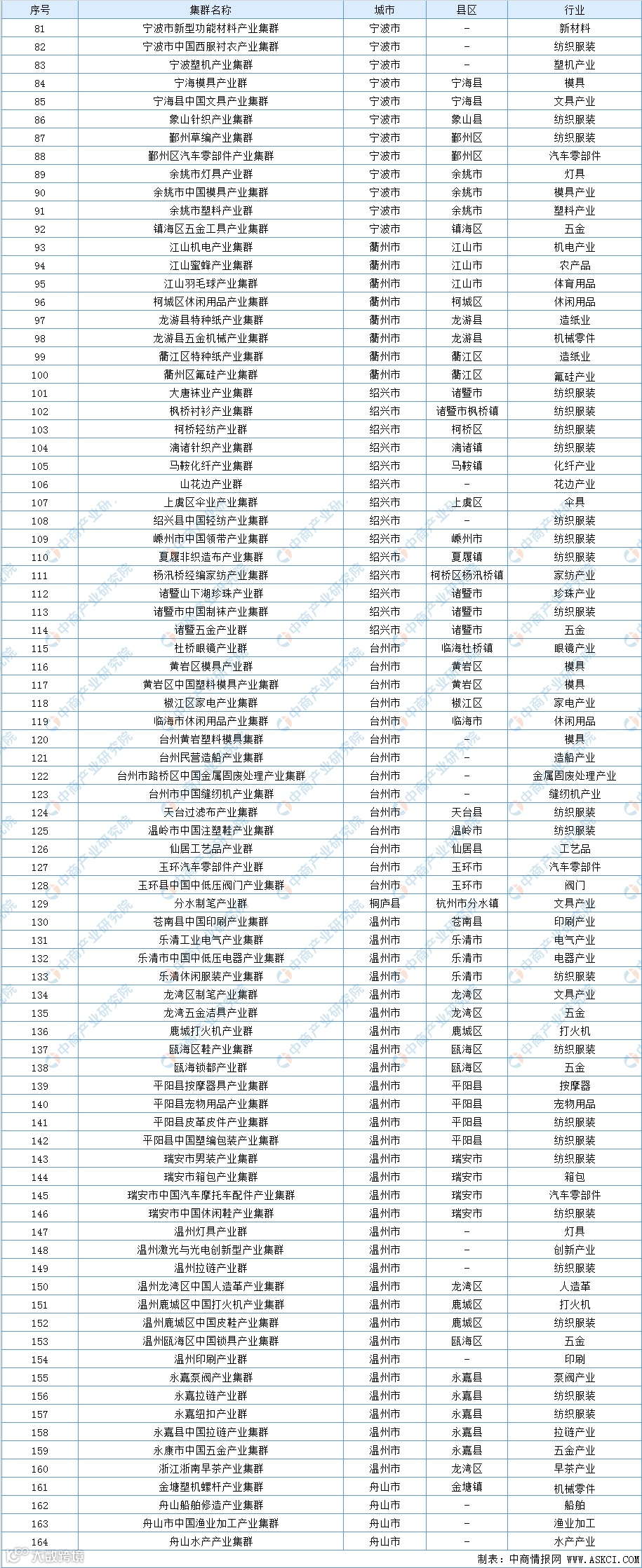 产业集群往往集聚了产业链上下游的企业,是地方招商的重要目的。为此,中商产业研究院整理出浙江省164个产业集群。