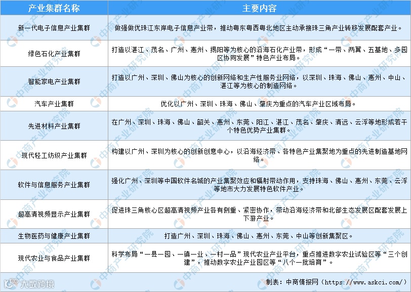 2020年广东省“十大”战略性支柱产业集群一览