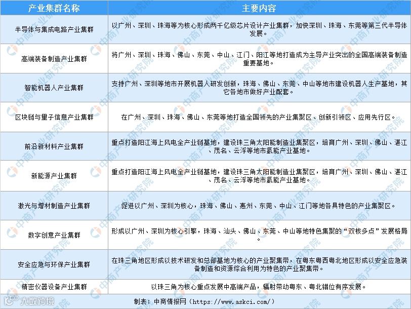 2020年广东省“十大”战略性新兴产业集群一览