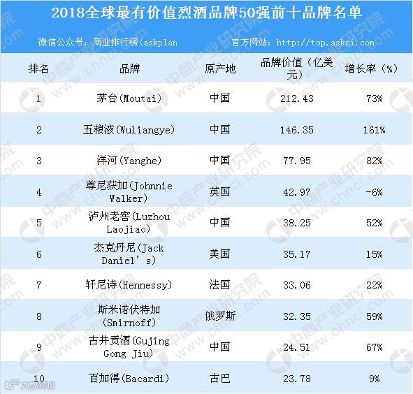 附:2018全球烈酒品牌价值50强榜单