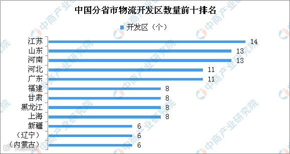 为了更全面的了解我国物流行业发展现状,中商产业研究院梳理出国内物流开发区157个。据统计,物流开发区数量最多的省市主要分布在沿海地区。其中,江苏省、山东省、广东省、河南省、河北省物流开发区数量超过10个,排名前列。