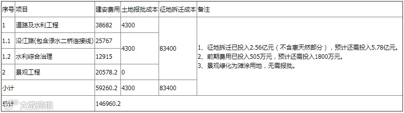 依据控规与设计概算,需投入成本为146960.2万元。如下表(单位:万元):
