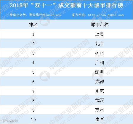 从城市销售额来看:在2018天猫双11城市成交额中,top10城市排行榜出炉。据榜单显示,上海位居第一,北京第二,杭州第三,第四到第十名分别为广州、深圳、成都、重庆、武汉、苏州、南京。对此,网友评论称,有意思的是,除了北京,其余九个全部都是南方城市。是南方人更爱“剁手”?还是北方太冷,都早早钻被窝了呢?