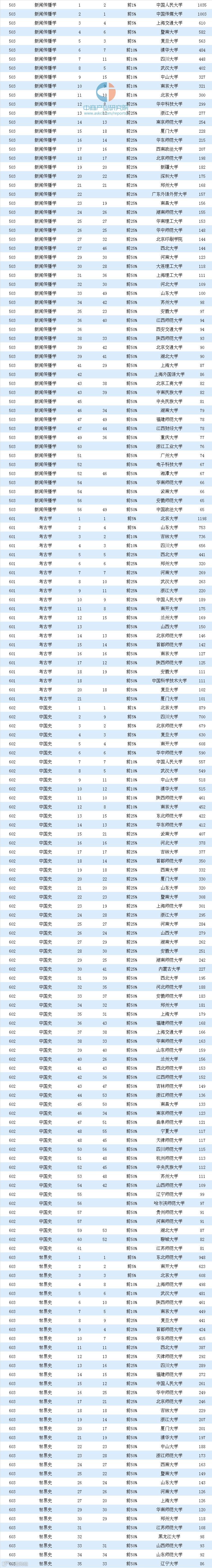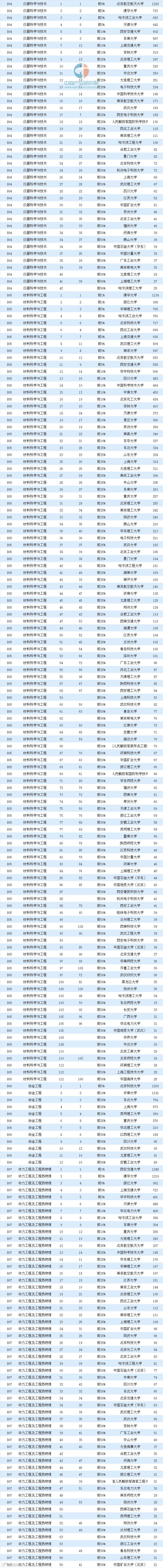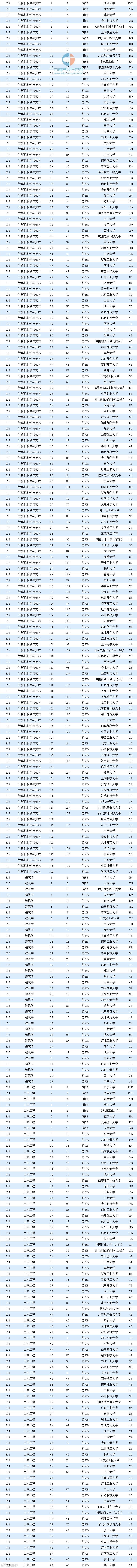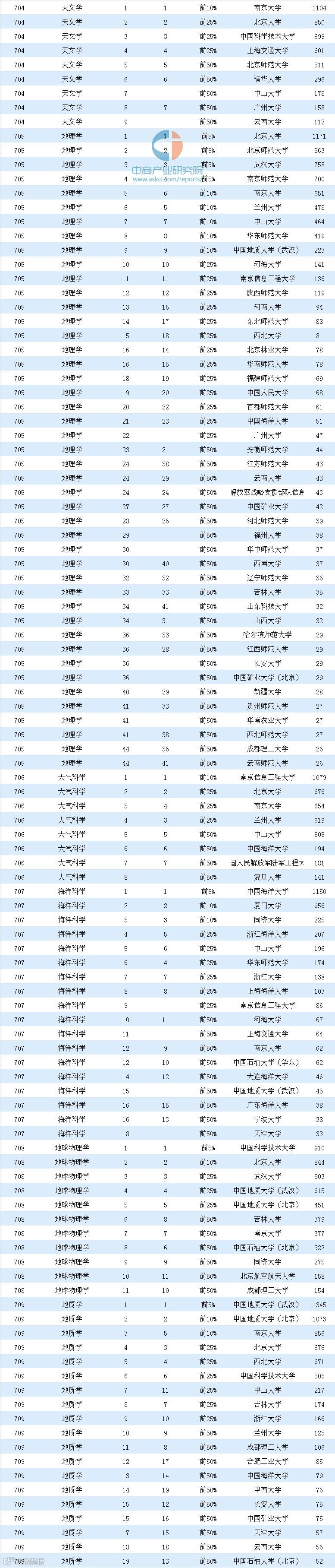 详细学科排名总表如下: