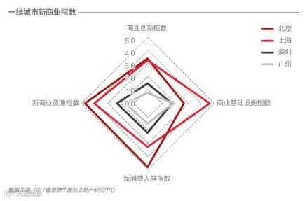 报告显示,北京实力潜力兼具,三项指标位列全国榜首,全面绩优;上海各项指标均衡发展,在商业基础设施指数上位列第一。