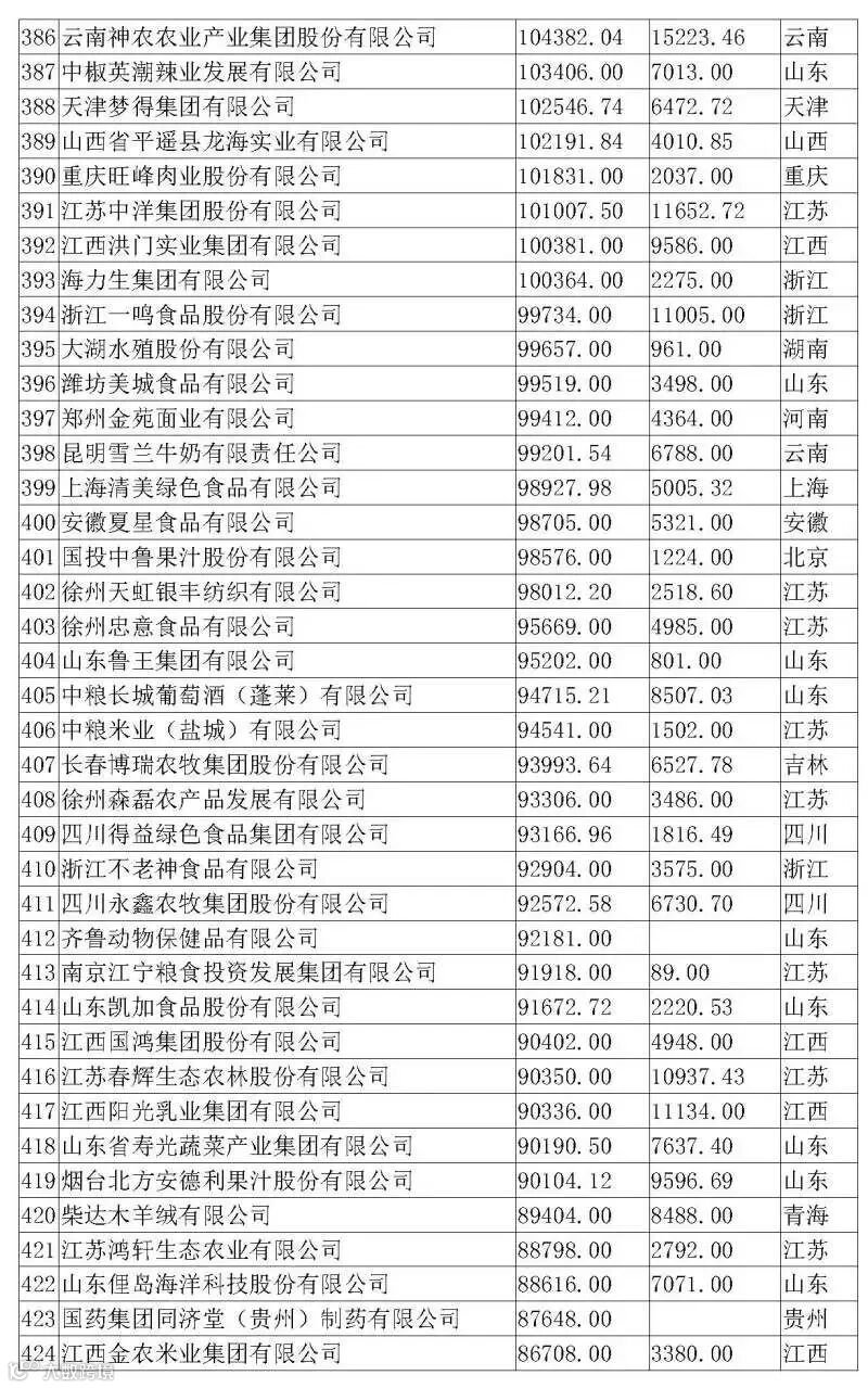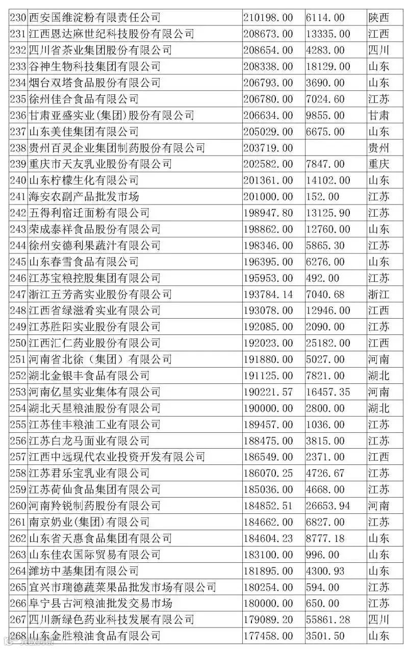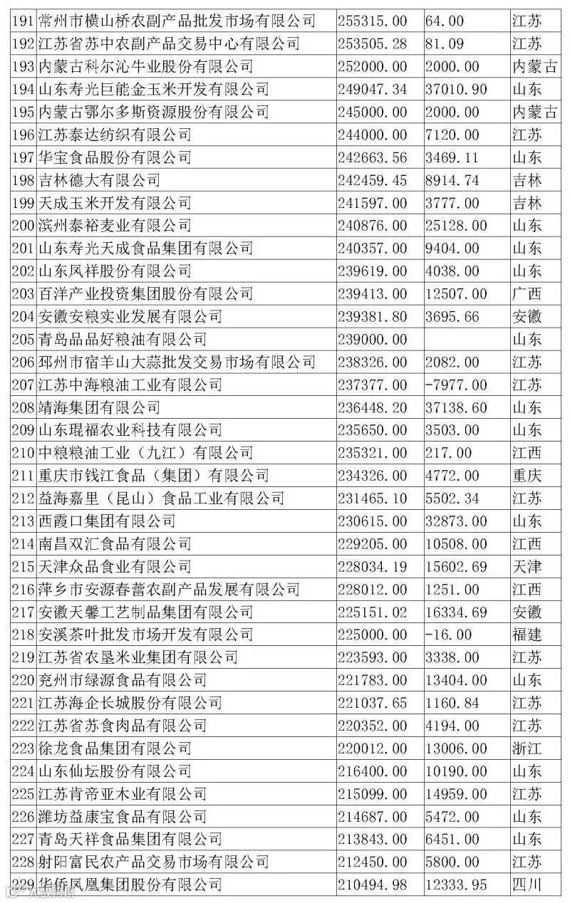以下是2019农业产业化龙头企业500强详细排名情况